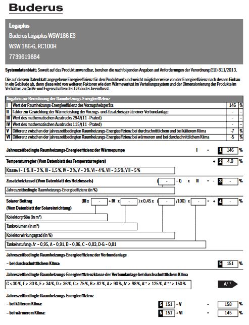 - Klasse für die jahreszeitbedingte Raumheizungs-Energieeffizienz (55grdC Vorlauftemperatur): A+++