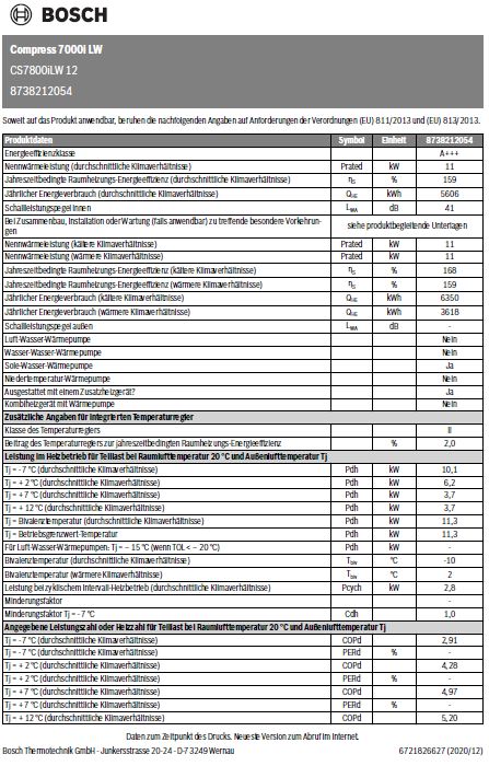 - Jahreszeitbedingte Raumheizungs-Energieeffizienz bei durchschnittlichen Klimaverhältnissen (55grdC Vorlauftemperatur): 159 %