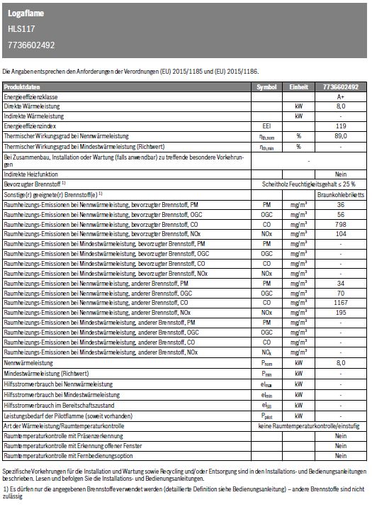 Buderus Logaflame Heizeinsatz HLS216 - Leistung: 8 KW