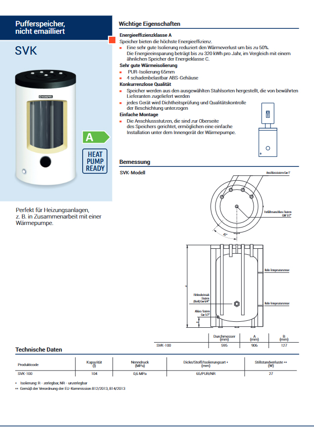 - Dauerleistung: 33,1 kW (Vorlauf 80°C und Speichertemp. 45°C)