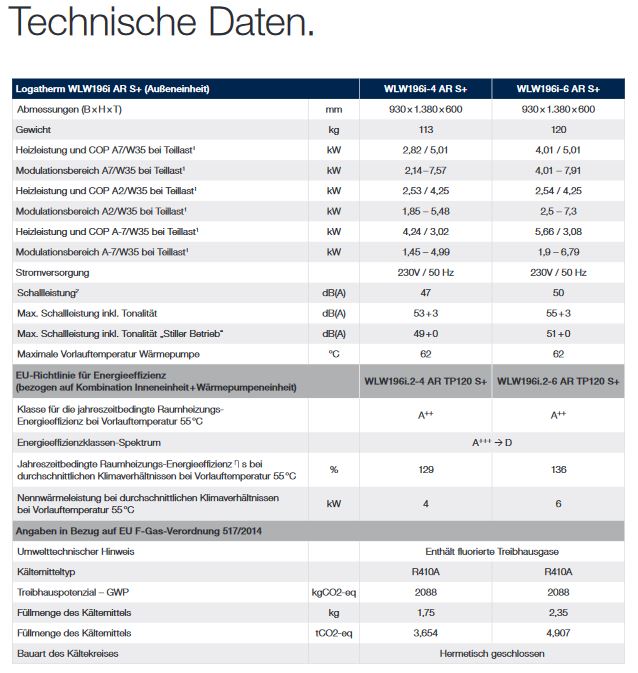 - Wärmenennleistung bei durchschnittlichen Klimaverhältnissen bei 55 C: 4 kW