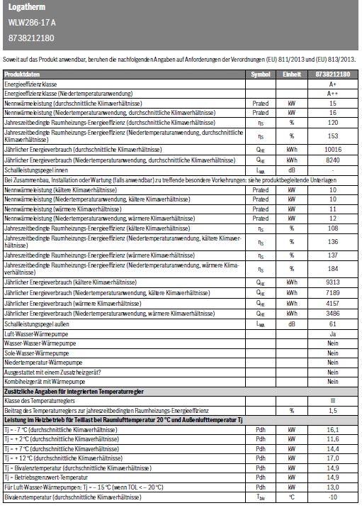 - Wärmenennleistung bei durchschnittlichen Klimaverhältnissen bei 55 C: 15 kW