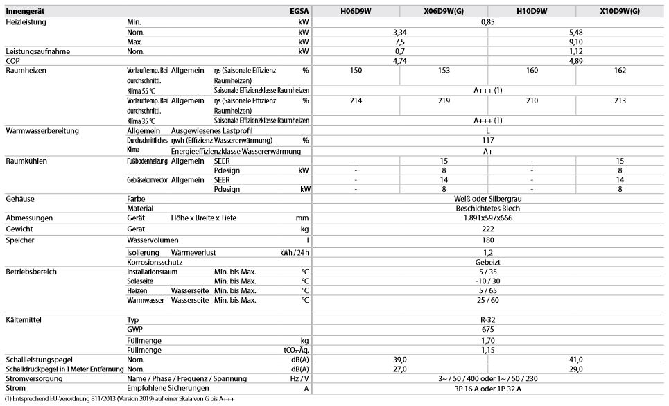 - Max. Heizleistung: B0/W35: 9,6 kW