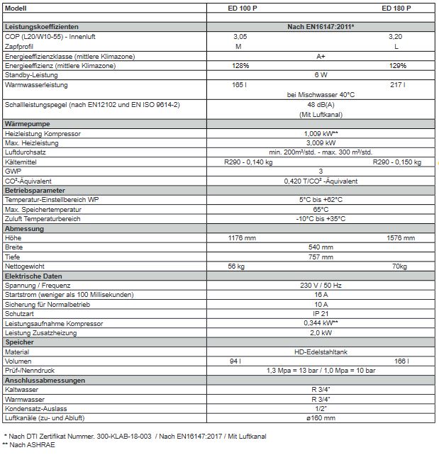 ecodesign Warmwasserwärmepumpe ED 180P Speichervolumen 166 Liter