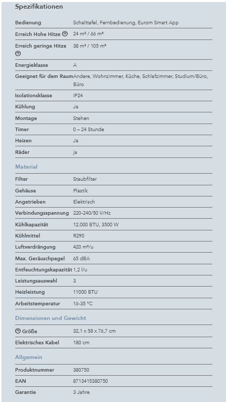 - Kühlleistung: max. 3200 BTU, 940 W