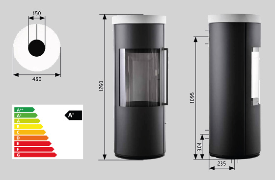 - Kaminofen Novaline Perla XT (Bietigheim) Korpus schwarz,drehbar 360° 7,0 kW / Höhe 124 cm