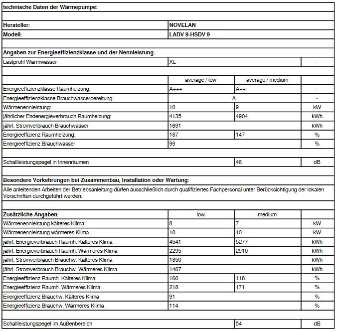 - Novelan LADV 9- Außengerät leistungsgeregelt mit 5,08 kW bei A2/W35