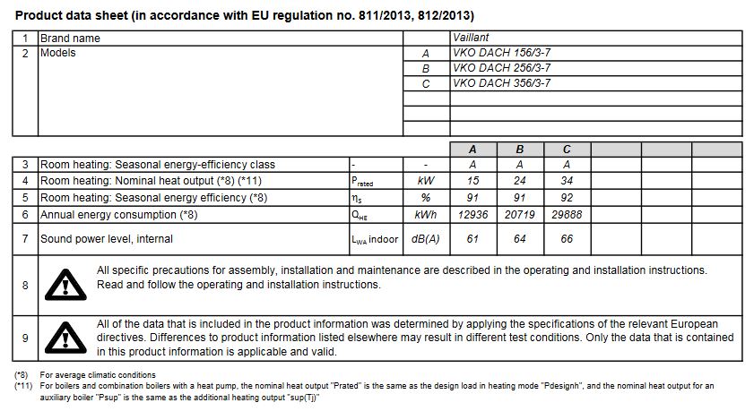 - Jahreszeitbedingte Raumheizungs-Energie- Effizienzklasse A (Spektrum A+++ bis D)
