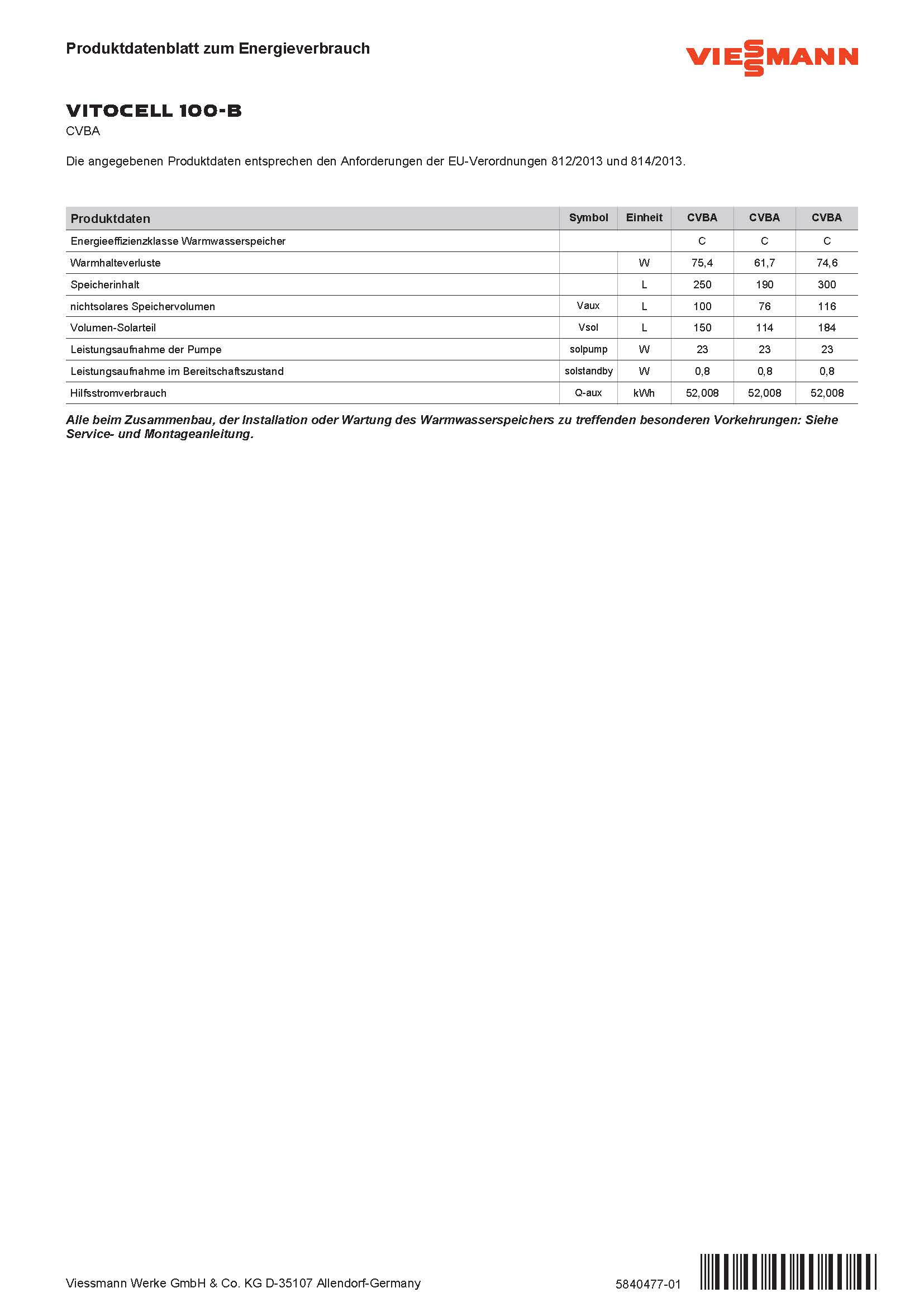 Beschreibung Solarspeicher Vitocell 100-B 250 Liter:
