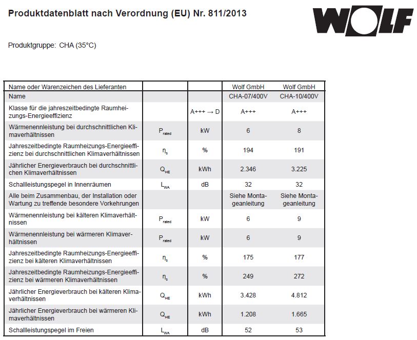 Modulierende, energieeffieziente Ausführung für Heiz- und Kühlbetrieb sowie Warmwasserbereitung auch bei niedrigen Außentemperaturen. Natürliches Kältemittel R290 (Propan) mit niedrigen GWP (3). Vorlauftemperatur bis zu 70C im reinen WP-Betrieb für sicheren Schutz vor Legionellen. Entsprechend den gültigen Normen und Sicherheitsvorschriften ausgeführt. EHPA-zertifiziert, Smart-Grid-Ready-, hybridfähig für ökol. oder ökonomischen Betrieb. Außeneinheit: Stabile Gehäusekonstruktion, UV-beständig. Stufenlose, elektr. Leistungsregelung mit Inverter-Technik für effizienten Teillastbetrieb mit hohem Modulationsbereich. Komponenten schalldämmend in EPP-Kern gebettet. Für Heiz- und Kühlbetrieb zwei separat voneinander unabhängig elektronisch gesteuerte Expansionsventile für hohen COP. Strömungsoptimierter Rippenrohr-Verdampfer mit im Gehäuse integrierten Metallschutzgitter, aus Kupferrohr mit aufgepressten Aluminiumlamellen und hydrophober Schutzbeschichtung für längere Laufzeiten ohne Abtaubedarf. Wärmegedämmter Plattenwärmetauscher (Edelstahl 1.4301) als Verflüssiger. Vorlauf- und Rücklaufsensoren im Gerät integriert. Hydraulischer und el. Anschluss unter- und rückseitig zubehörlos möglich. Hohe JAZ durch optimierte Verdampferleistung und EC-Axialventilator im Eulenflügeldesign mit Ventilatorschutzgitter nach DIN EN 13857 für optimalen Schutz auch von Kleinkindern. Aufstellung der Außeneinheit und Sicherheitsabstände gemäß der WOLF Montage- und Bedienungsanleitung. Kältekreis nach Druckgeräte Richtlinie 2014/68/EU mit hermetisch gekapseltem Scroll-Verdichter. Nachtbetrieb und Schallentkopplung. Heizbetrieb: max. Heizwassertemp. von 75C mit E-heizelement. Entsprechend den gültigen Normen und Sicherheitsvorschriften ausgeführt. Außeneinheit Aufstellung auf Boden oder Boden- bzw. Wandkonsole. Vor- und Rücklaufleitung zwischen Außen- und Inneneinheit bauseits. Verdampferabtauung über Kreislaufumkehr. Inneneinheit: Hoch-effizienzumwälzpumpe EEI<0,21 für Heizkreis und WW-Betrieb integriert. Spreizungsregelung über Pumpendreh-zahl. 3-Wege-Umschaltventil für Heiz-/Kühl-/Warmwasserbetrieb. Integr. Wärmemengenzähler nach BAFA mittels Durchflusssensor. Bedarfs-gerecht geregeltes Elektroheizelement mit 9 kW (400V) im Durchlaufprinzip. Warnmeldung bei niedrigem Wasserdruck durch Heizwasserdrucksensor. Inneneinheit gedämmt inkl. Heizkreissicherheitsventil 3 bar mit Kunst-stoffablaufschlauch (Innen-DM 19 mm), manuellem Entlüfter und analogem Druckmanometer. Regler mit Steuer- und Überwachungsorganen der ges. WP. Eingänge der Regelung Inneneinheit: eBUS, Speicherfühler, Außenfühler, S0-Schnittstelle/ EVU/ Smart Grid/ PV-Anhebung, 3 parametrierbare Eingänge z.B. für Sammlerfühler/ Taupunktwächter/ Externe Ansteuerung 0-10V. Ausgänge: Externe Heizkreispumpe, Anforderung 2. Wärmeerzeugers, Ext. 3-Wege-Umschaltventil für den Kühlbetrieb, Zirkulationspumpe, 3 parametrierbare Ausgänge. Bedienmodul BM-2 oder AM in Inneneinheit integrierbar. Vorbereitet für WOLF Link home zur Kommunikation per Smartset App und Web. Hydraulische Anschlüsse DN28 (Glattrohr). Montage der Inneneinheit wandhängend mit Einhängewinkel. Optional mittels Gerätekonsole auch an der Decke oder auf dem Boden möglich. Alternativ vollständig integriert im Komplettpaket WOLF Wärmepumpencenter CHC.